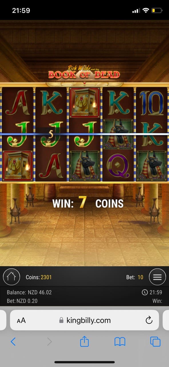 Ok, I deposited 30 NZD using Skrill, and they were added almost instantly with no fees. And it was time to claim the welcome bonus. I immediately got my balance doubled – 60 NZD and 50 free spins in Book of King Billy (The total amount of 100 Free Spins should be given in 2 packs of 50 Free Spins). The bonus comes with 30x wagering requirements and the max bet is 7.5 NZD. I managed to get 3.54 NZD in free rounds – not that rewarding. If you’re chasing extra value, check our casino bonuses for the latest NZ picks.