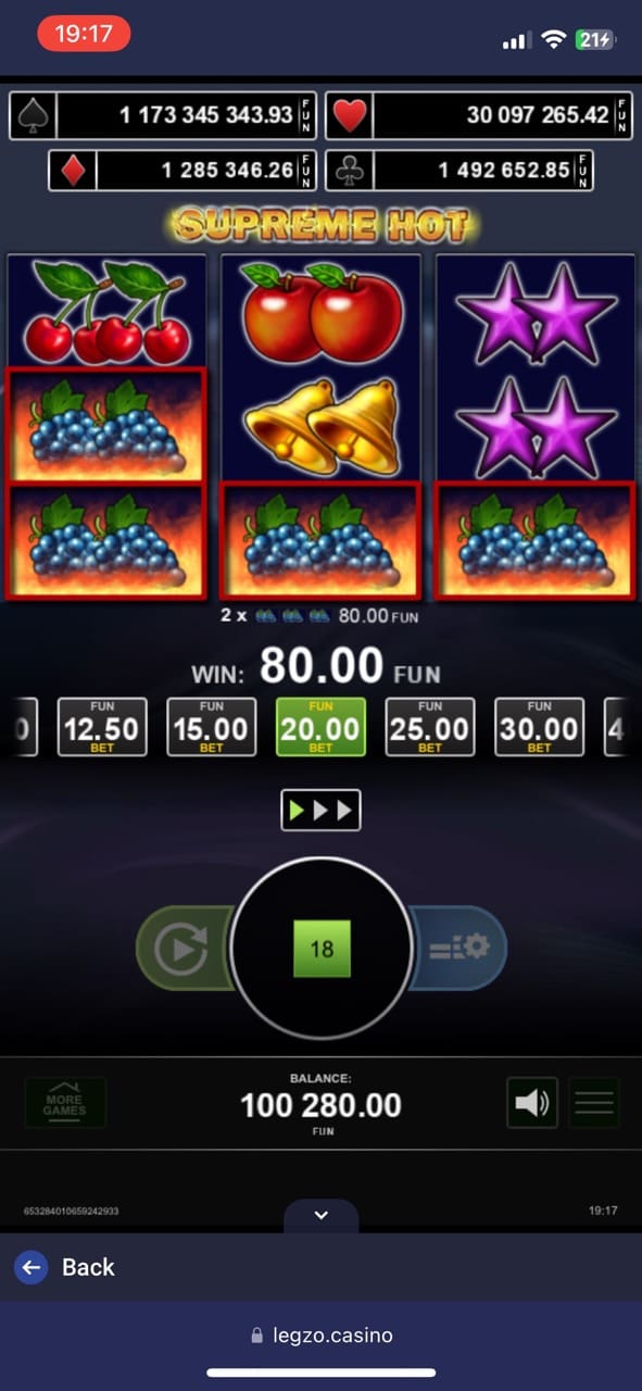The games I tested on this gambling platform were Secrets of Cairo, Rich Wilde and The Book of Dead, Hit the Gold, where I got a bonus game with 3 re-spins and won 22x my bet, Space War Touch, Supreme Hot, Rise Of Ymir, Sakura Fortune, Fruit Vegas Extreme x125. Le Bandit, Aztec’s Legend 2, and Mummyland Treasures.