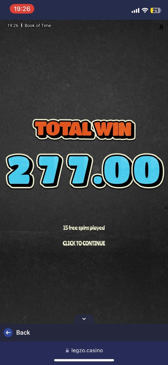 Another pokie title that brought me fortune was Book of Time pokie. Spinning the reels, I was lucky to trigger a bonus game that features 10 FS, and during the game, I landed 5 more FS. Guys I was absolutely stoked by the gigantic 100x win, thanks to the bonus game.