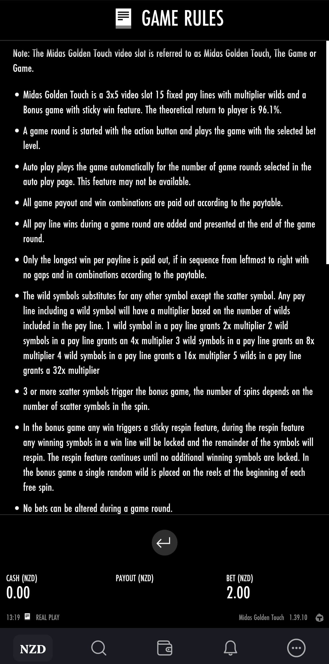 I’d say this constitutes a pass of my test, with a warning. Make sure to check the RTP of the game you’re playing by going to the Info screen. Also take note that this is a snapshot of the RTPs taken at the time when I was playing, in December 2024. The RTPs can change at any time.