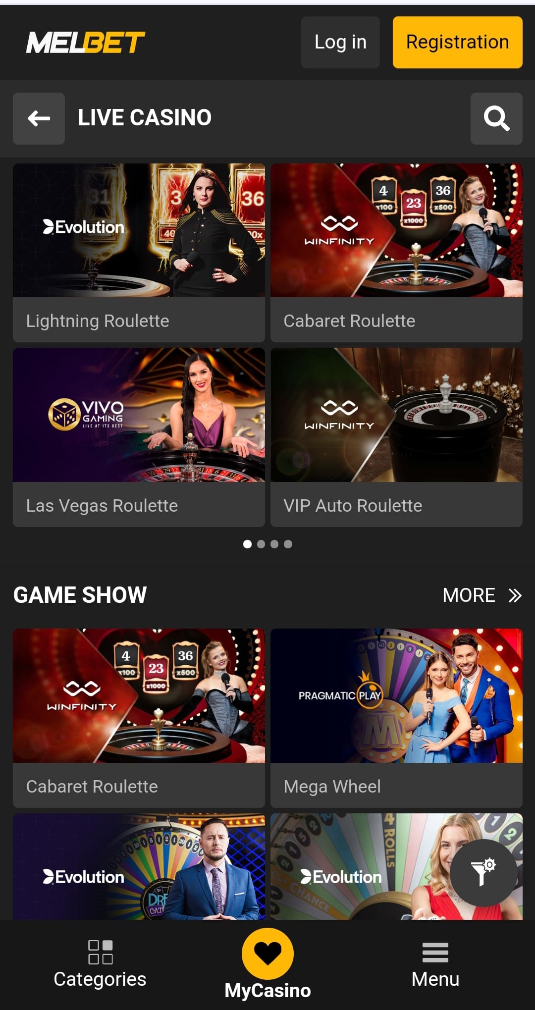 The lineup of live dealer games at Melbet is impressive. Much better than the pokies section, I must say. Here, you got the two top developers in Evolution and Pragmatic Play while Playtech and Ezugi are absent, and there are a bunch of smaller providers: Winfinity, Vivo Gaming, VTV Bet, 7Mojos, Absolute Live Gaming, SA Gaming, Lucky Streak, XPG, Asia Gaming, Atmosfera, GrazGame, Super Spade Games, LiveG 24, ElCasino.