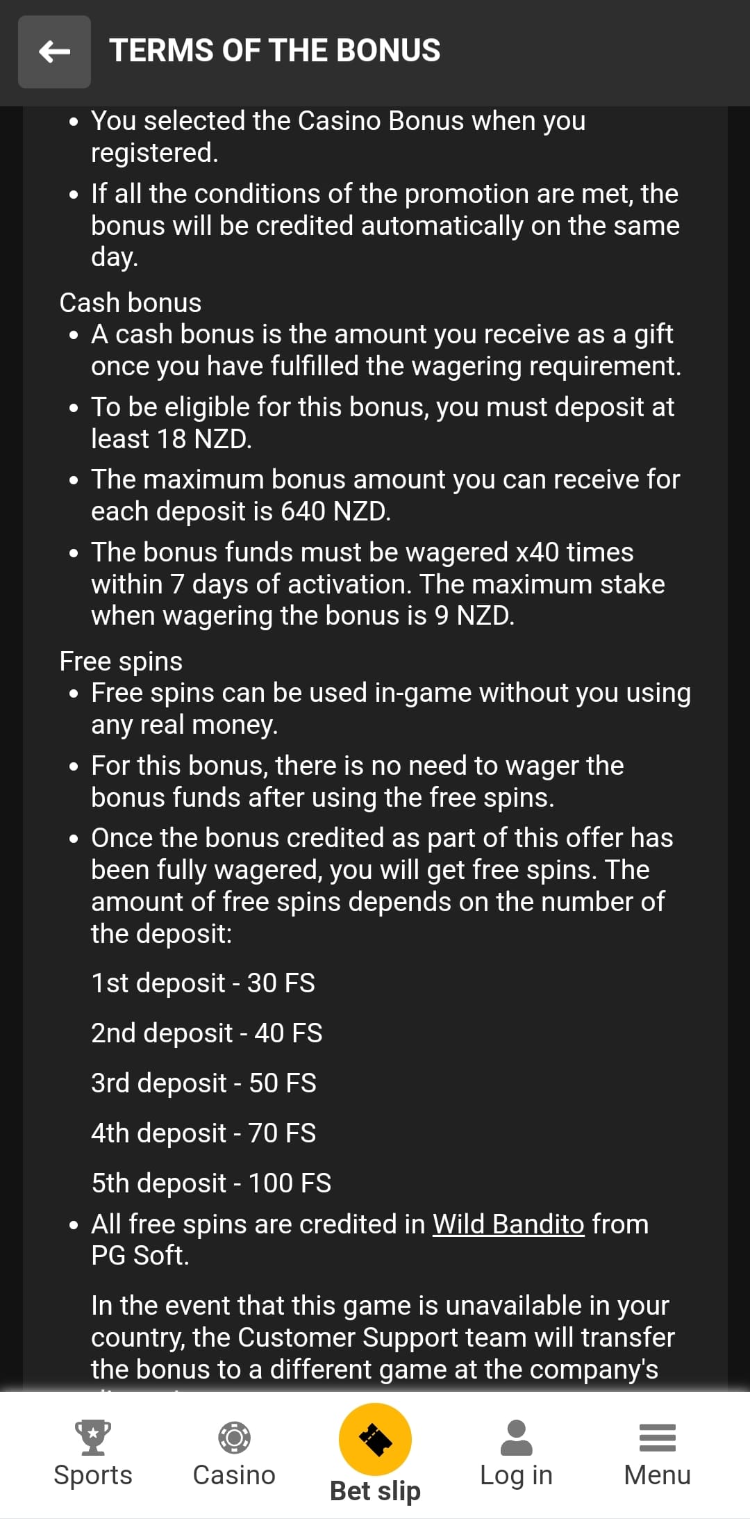 - All free spins are credited in Wild Bandito (PG Soft)