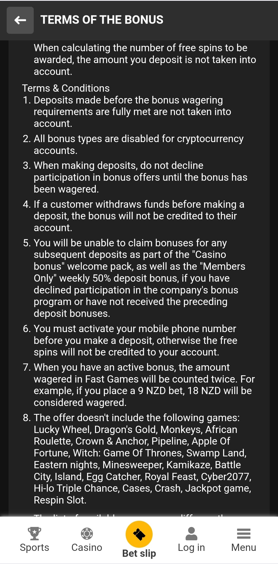 - Cryptocurrency deposits can’t get bonuses