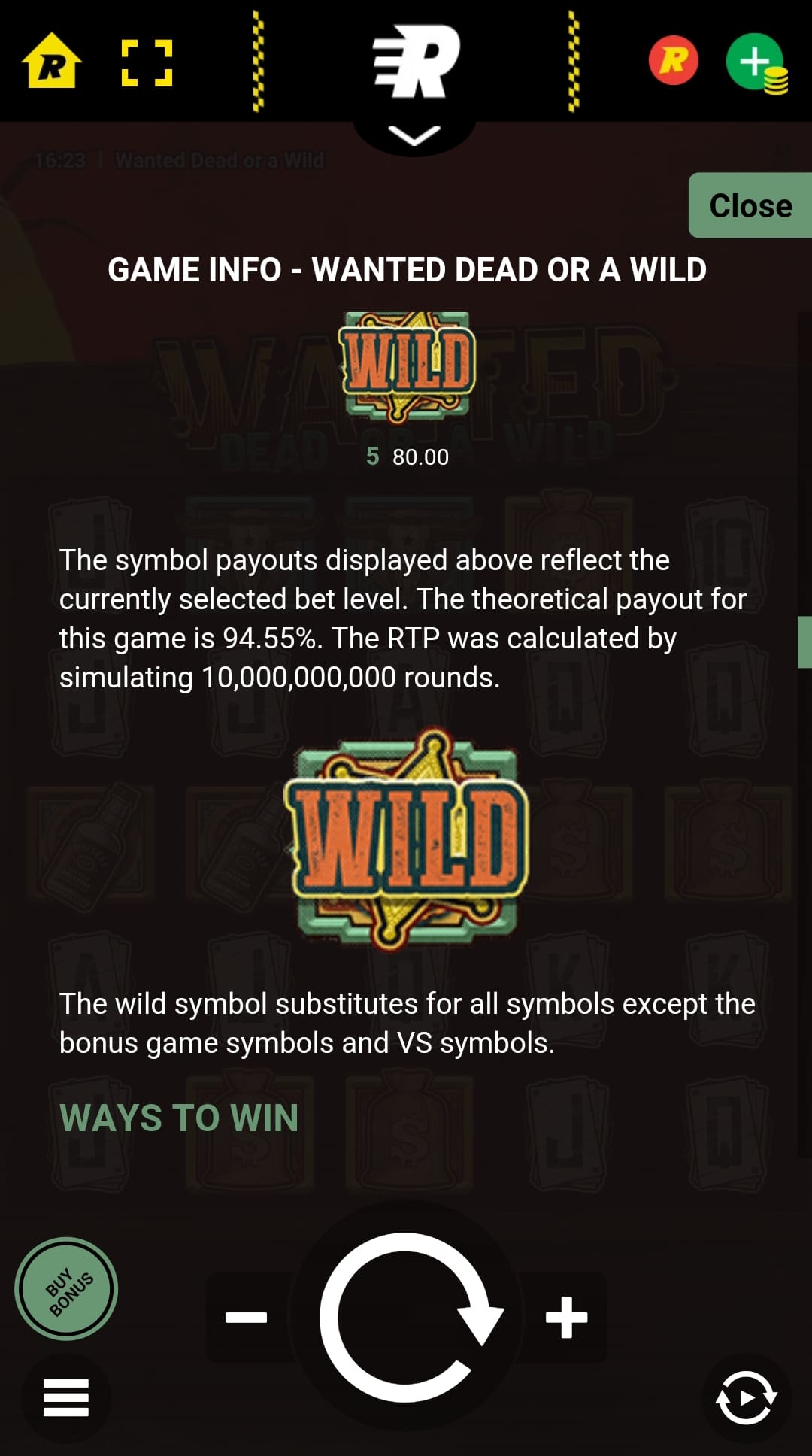 | Wanted Dead or a Wild | Hacksaw Gaming | 94.55% | 96.38% |