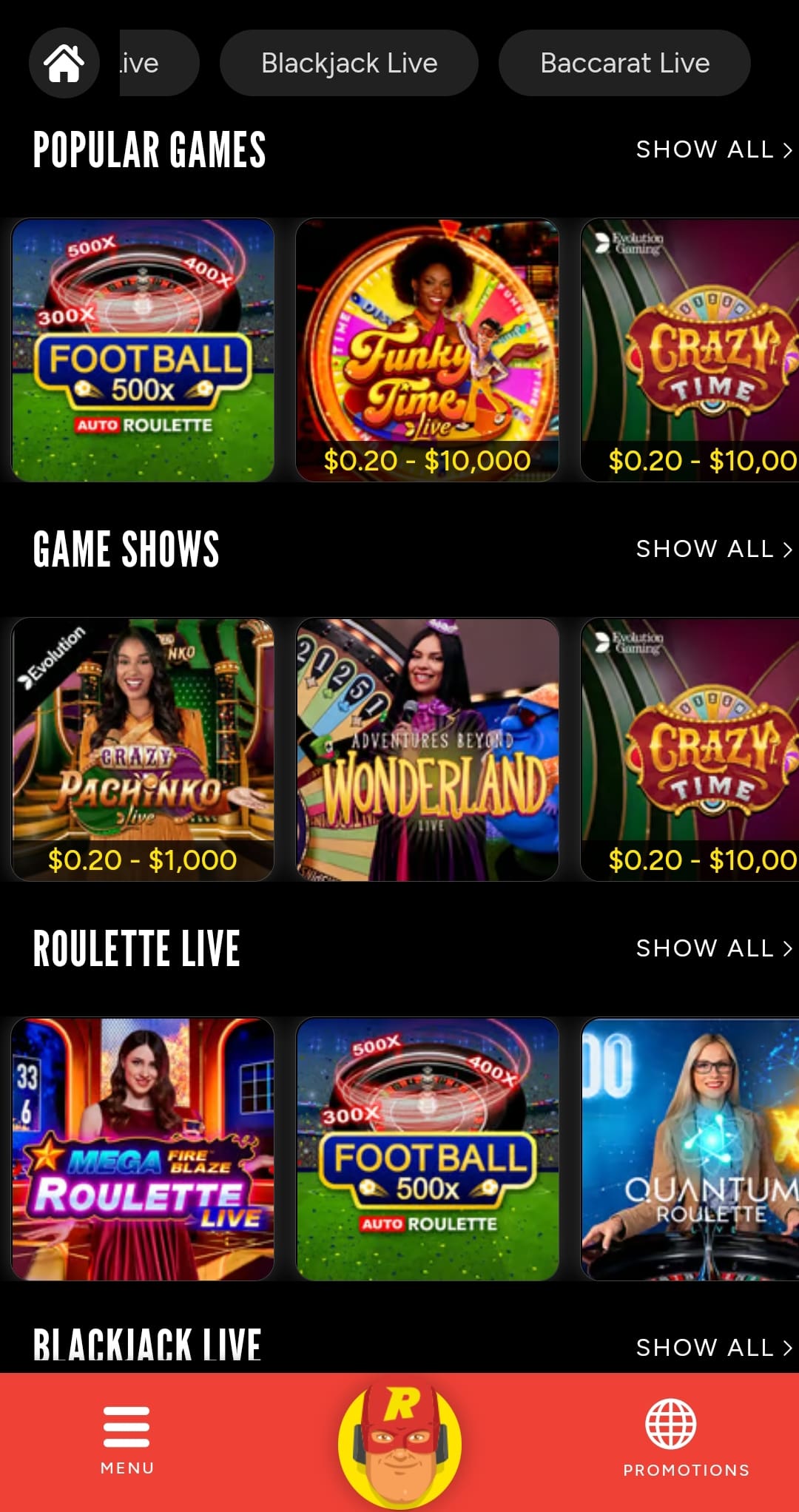 Live Casino at Rizk is a bit of a letdown, I must say. You’ll get all the top Evolution and Pragmatic Play games, there’s Authentic roulette too, but if you don’t know what else can be there in a live lobby then you’d be amazed by the games at your disposal at Rizk.