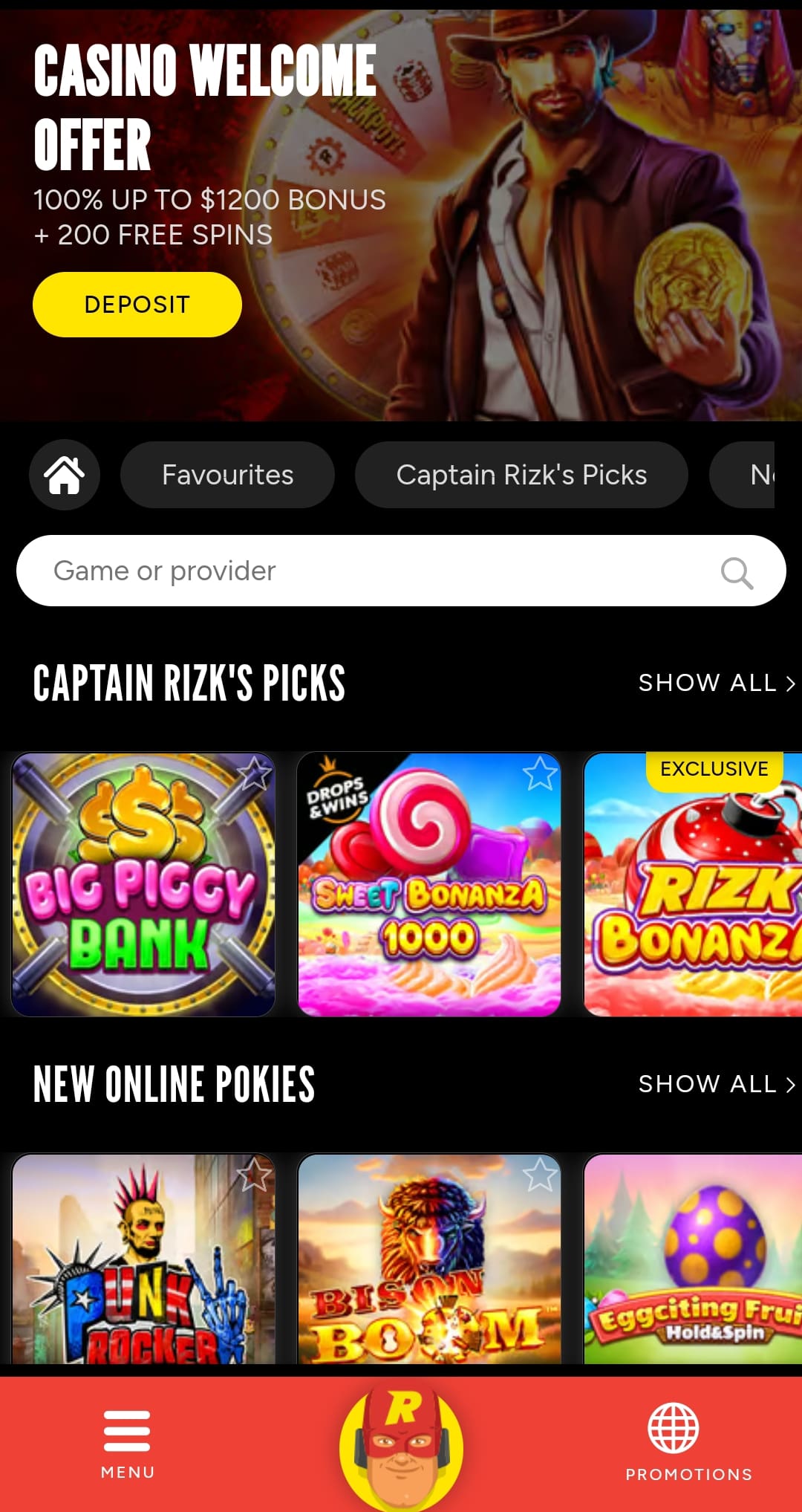 There are some exclusive games such as Rizk Bonanza and Gates of Rizk, obviously by Pragmatic Play. Cool stuff.