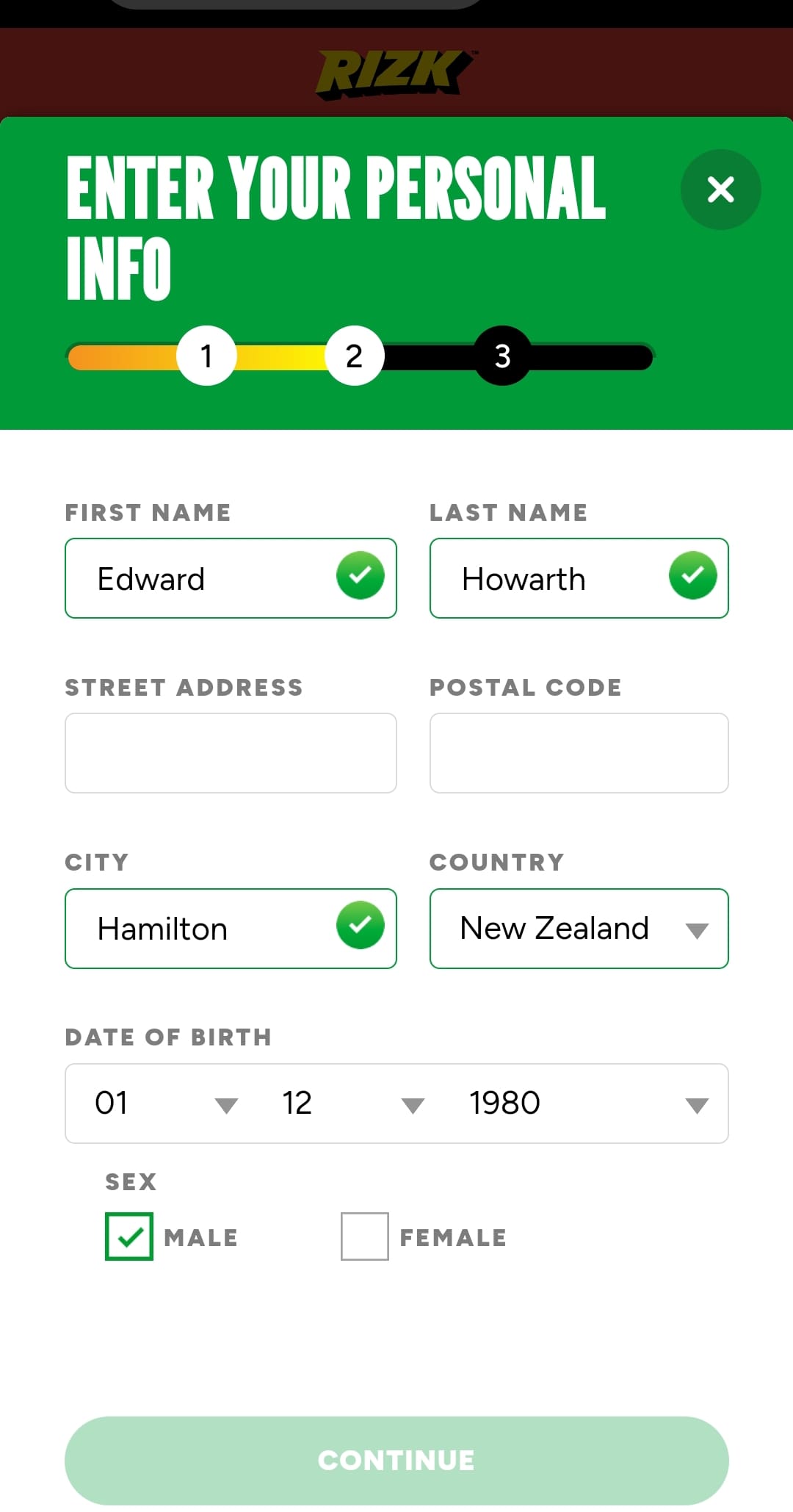 It’s really simple to register a new account at Rizk. The process is streamlined and you’ll be a member in no time, so click the link and sign up. Enter the correct personal information as you’ll need to verify your identity before you make a withdrawal.