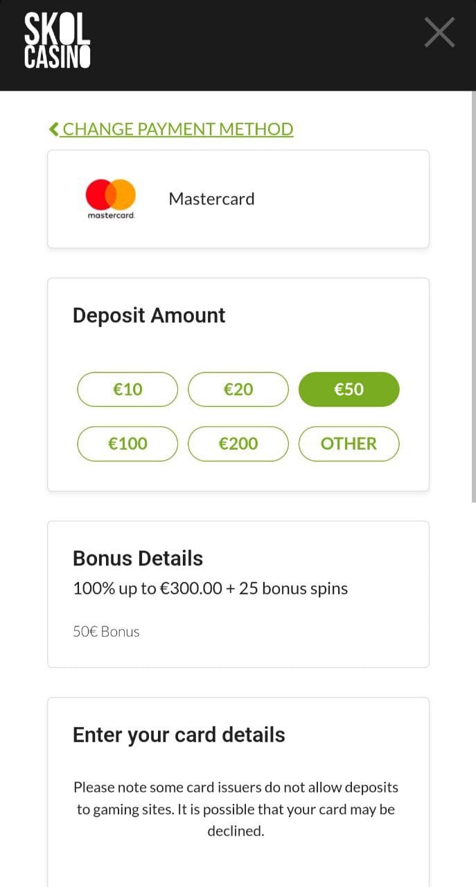 Like I said, Skol is very limited when it comes to deposit options. This was the worst part of my playing experience, I must say, as I had to get out of my way to sign up with an e-wallet just to be able to make a deposit to Skol.