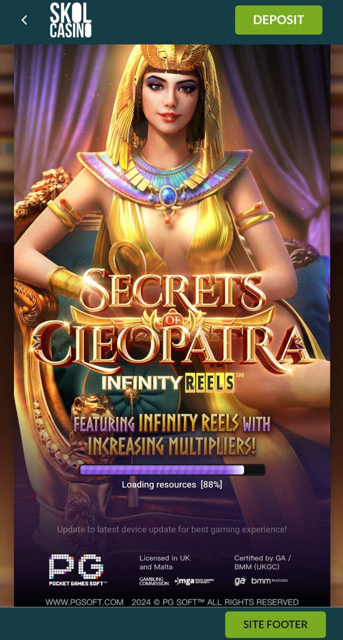 I tried to play Secrets of Cleopatra while I was waiting to get verified at MuchBetter, in demo mode of course as I had no real funds yet, but couldn’t. Got a warning that the transaction (my spin) failed because there are no funds at the account.
