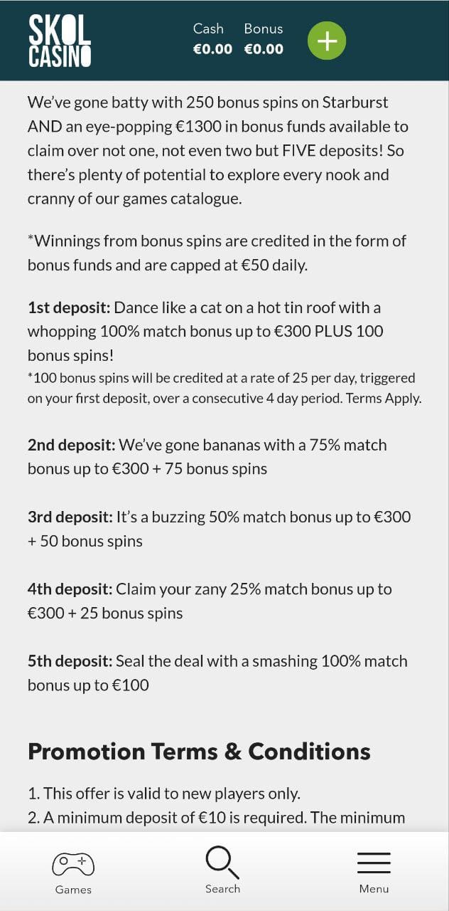 Skol Casino offers NZD as a currency but that’s just a website skin, so to speak, as all the bonuses and everything else on the website is described in EUR. They’ll process your payment in NZD alright, to your NZ bank account too, but this isn’t one of those casinos that cater to Kiwis fully.
