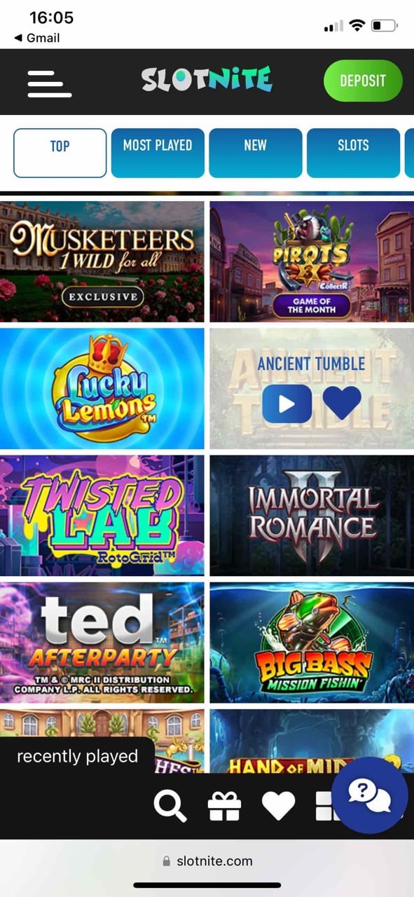 Slotnite has a huge selection of lottery-type games called Slingo. These are a mix of slots and bingo. I tested Money Train and Slingo River Reels. They are quite cool games.