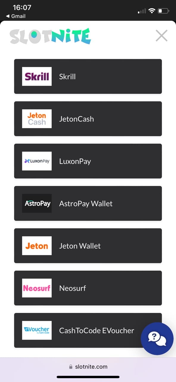 To properly understand the casino and how it works, I started with registration, which is almost identical to other NZ casinos I have reviewed before. Slotnite has quite a lot of payment methods, which is a big pro. The minimum required to receive a welcome bonus was 10 NZD. I funded 20 NZD using Paysafecard. Ideally, I would rather use Skrill. However, the bonus terms state that Skrill and Neteller deposits are not accepted for receiving the bonus.