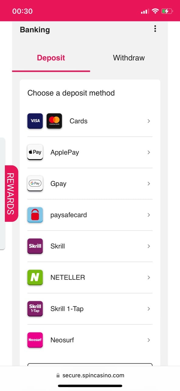 Spin Casino in New Zealand includes the most reputable deposit and withdrawal options, offering a safe and secure environment for online payments whether you use a desktop or mobile version of the site. Spin Casino uses SSL encryption software to keep players’ funds and information protected at all times.