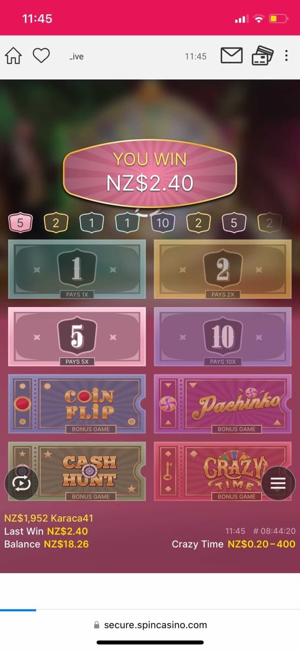 I played a few live casino games like Funky Time, Crazy Time, and Poker Casino Hold ’em with a min bet of 1 NZD. With my favorite live shows, I got some pleasant wins, with poker – I haven’t won a dollar, unfortunately. Not my day. One thing I noticed when I picked to play live games by Evolution Gaming was that I was sent not to the game page but to space with all available Evolution live games that were played at that time. So, if you are interested in playing a particular live casino game by Evolution, you can’t really play it if it’s not available at the moment. You have to choose from what’s offered. Well, this is not very convenient. I also tried to play some Programmatic Play games, yet the Spin Casino said the games were not available.