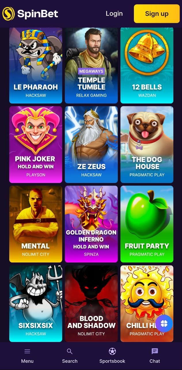 Casino games at Spinbet Casino you can play at