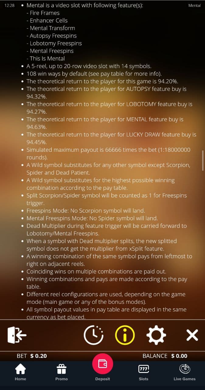| Mental x9999 | NoLimit City | 94.20% | 96.06% |