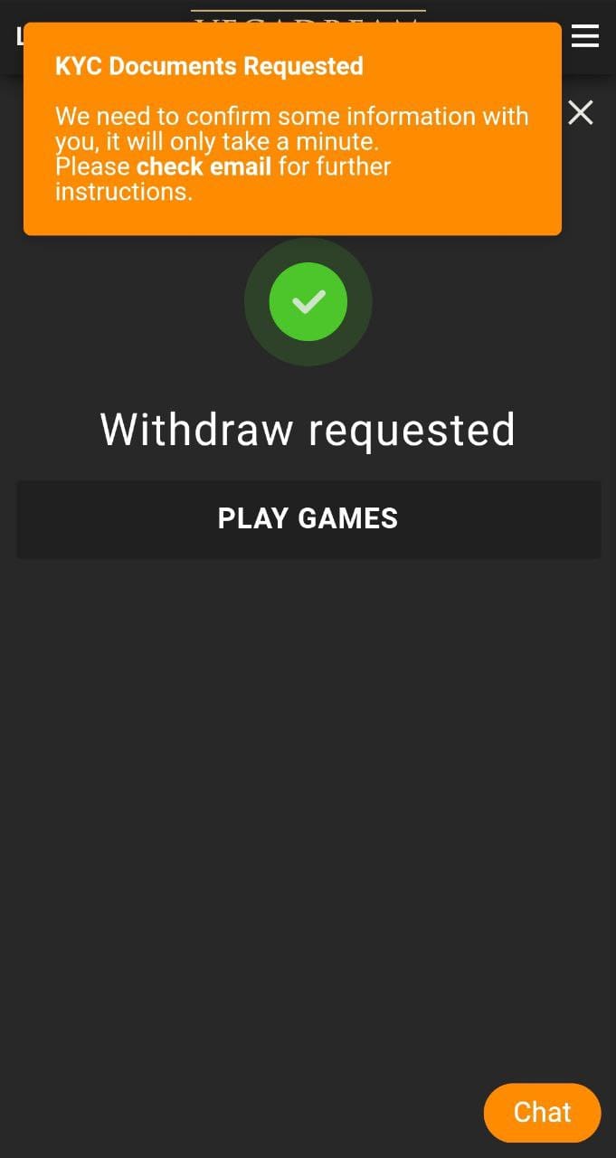 And then, my withdrawal got stuck. Vegadream implements a mandatory 48-hour pending period after you submit your KYC documents and the withdrawals are halted during this time even though you’re verified. Two days, man. This is completely uncalled for, unnecessary, and, frankly, it’s just annoying. What are you doing with my money for two days? Should I apply an interest rate?