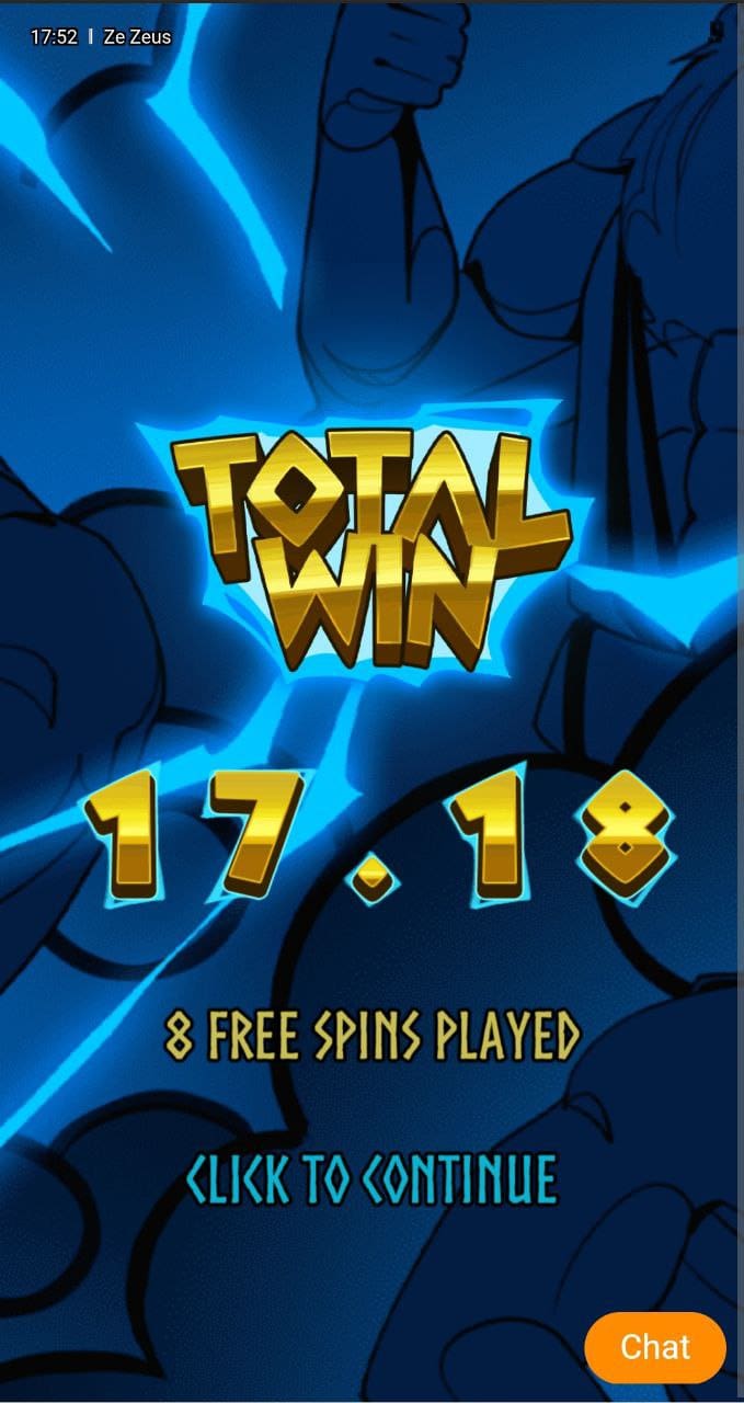 I did get the 35 free spins worth €0.10 each on Rich Wilde and the Book of the Dead, and when I entered the game I got a popup saying I got free spins on Ze Zeus (by Hacksaw Gaming) too. I got 20 spins worth €0.10 each, went to play that game first, and triggered the bonus round with my first spin! Edward is born under a lucky star, you know it! Won an amazing €17.18 in the bonus round, which is 172x my bet. Sweet as. In the end, I won €17.99.