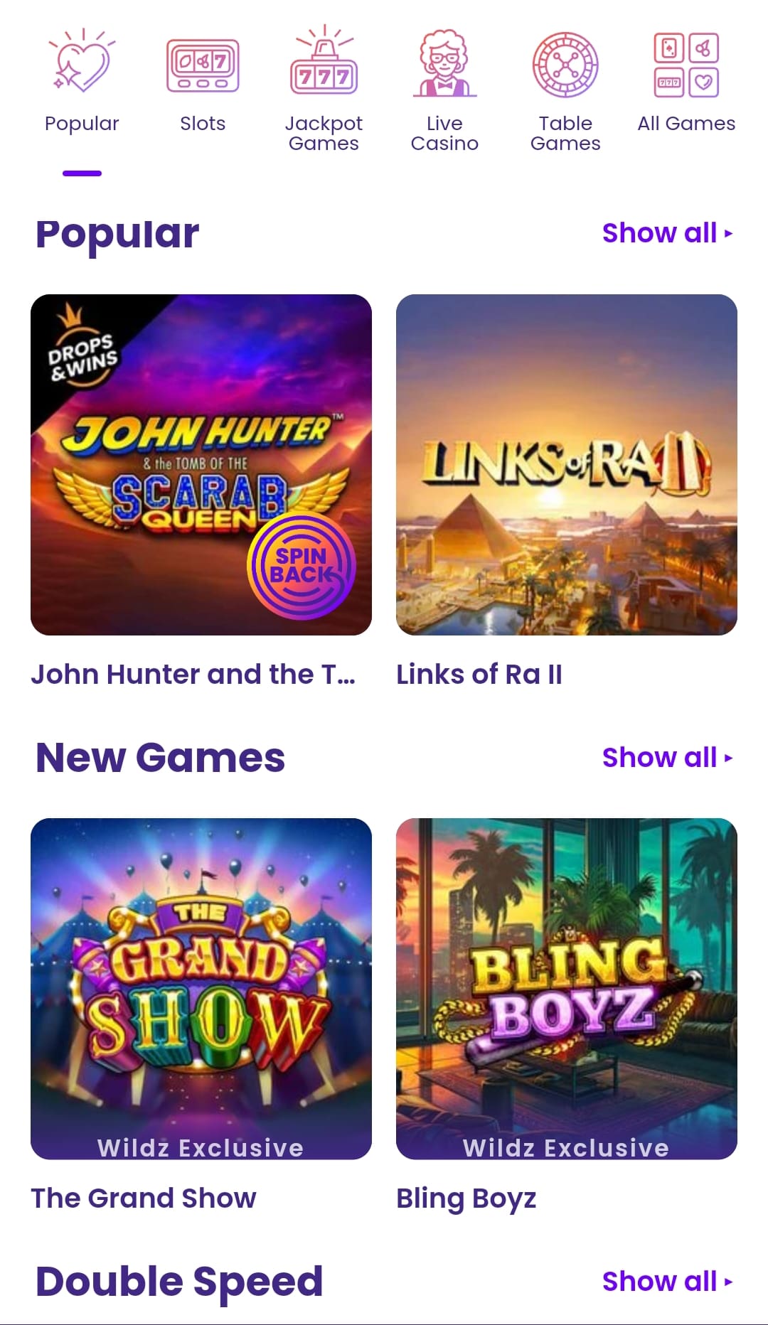 That being said, there are TONS of pokies here, it’s just that Wildz is doing a poor job promoting them. There are exclusive pokies too. You’ll see the offer of this casino in all its glory if you click All Slots. There, pokies are listed by developer. Notable absentees are Fortune Factory, Gameburger, Reel Kingdom and Spinplay Games.