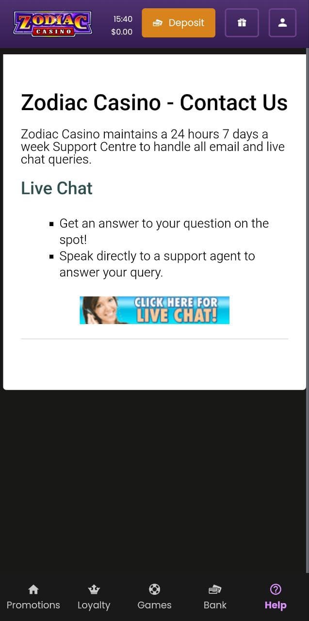I had to deposit some money to play the games, which was the first time I encountered something like this. Normally a casino will let you play the pokies in demo mode. Not Zodiac, I couldn’t play any game at all.