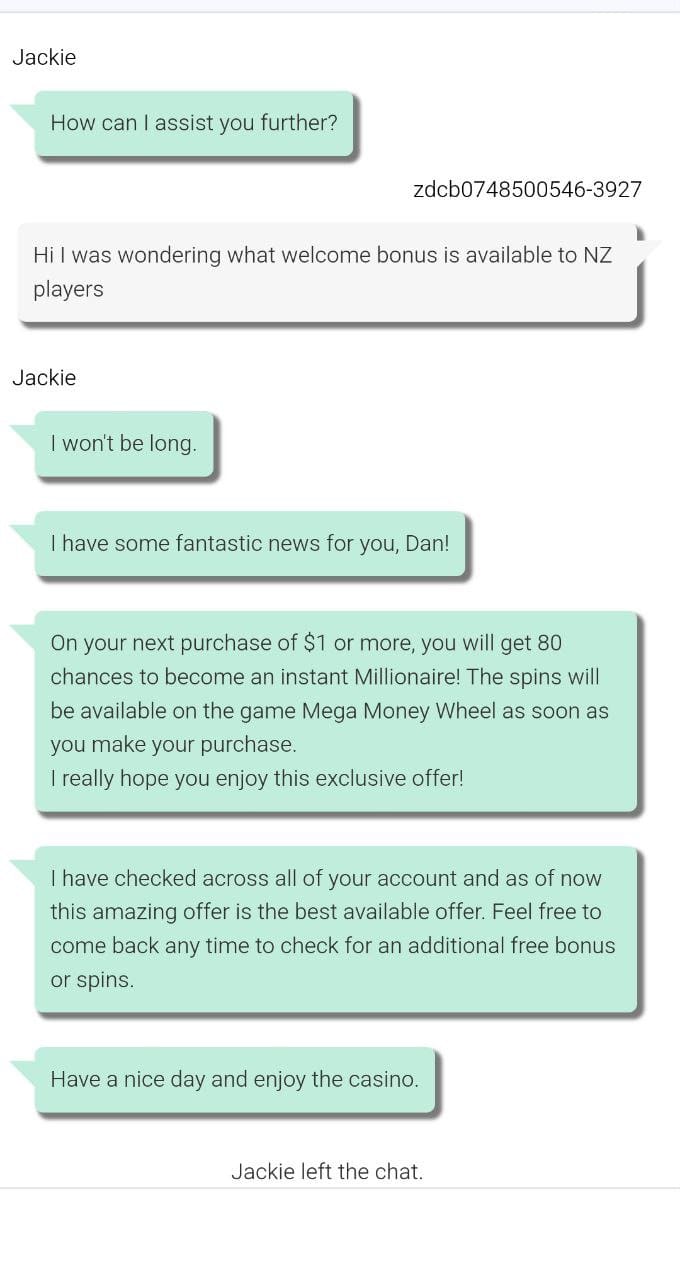 9 Oct, 2025Kia ora Salimos, thanks for the feedback. It is good to hear that another player had a hassle-free experience with the 80 spins offer. The speed of the payout is the biggest factor; 40 hours is a good turnaround. I agree that the variety of games is a bit limited though. Cheers, Sophia